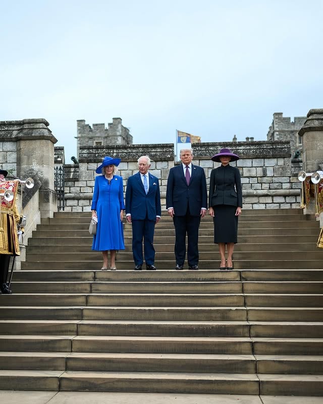 King Charles and Queen Camilla gifted Trump with the Union Jack flag that flew over Buckingham Palace on the day of his inauguration in January and “a bespoke, hand bound leather volume specially crafted by the Royal Bindery in Windsor Castle, to celebrate the 250th Anniversary of the Declaration of Independence,” which is really the ultimate sign that you’re on good terms with your ex. Trump gave the royal couple a replica of Dwight Eisenhower’s sword.